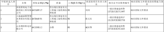 第一中标候选人:济南普利电子系统控制工程有限公司