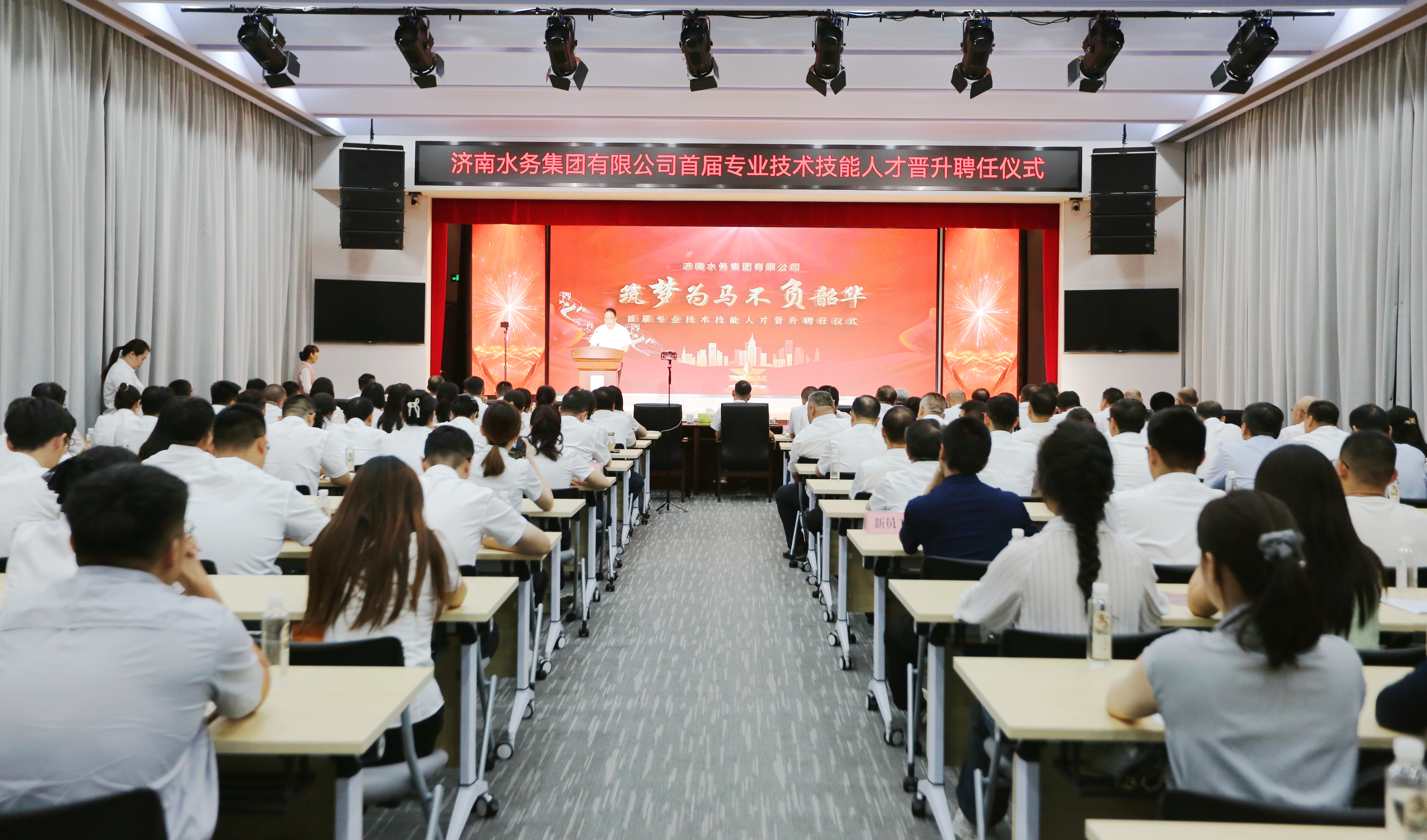 8月8日上午,济南水务集团东五楼礼堂气氛热烈。在上级领导、集团干部职工代表的共同见证下,一场具有里程碑意义的首届专业技术技能人才聘任仪式隆重举行。10位来自供水安全保障、智慧水务建设、水质化验提升、管网高效运行等关键领域的优秀人才,成为集团推行“双通道”职业发展体系中技术通道的首批标杆。这不仅是对个人专业价值的至高认可,更标志着集团创新打造的“管理+技术技能”双晋升通道从蓝图变为现实,一条打破传统单一成长路径的职业新赛道正式贯通。