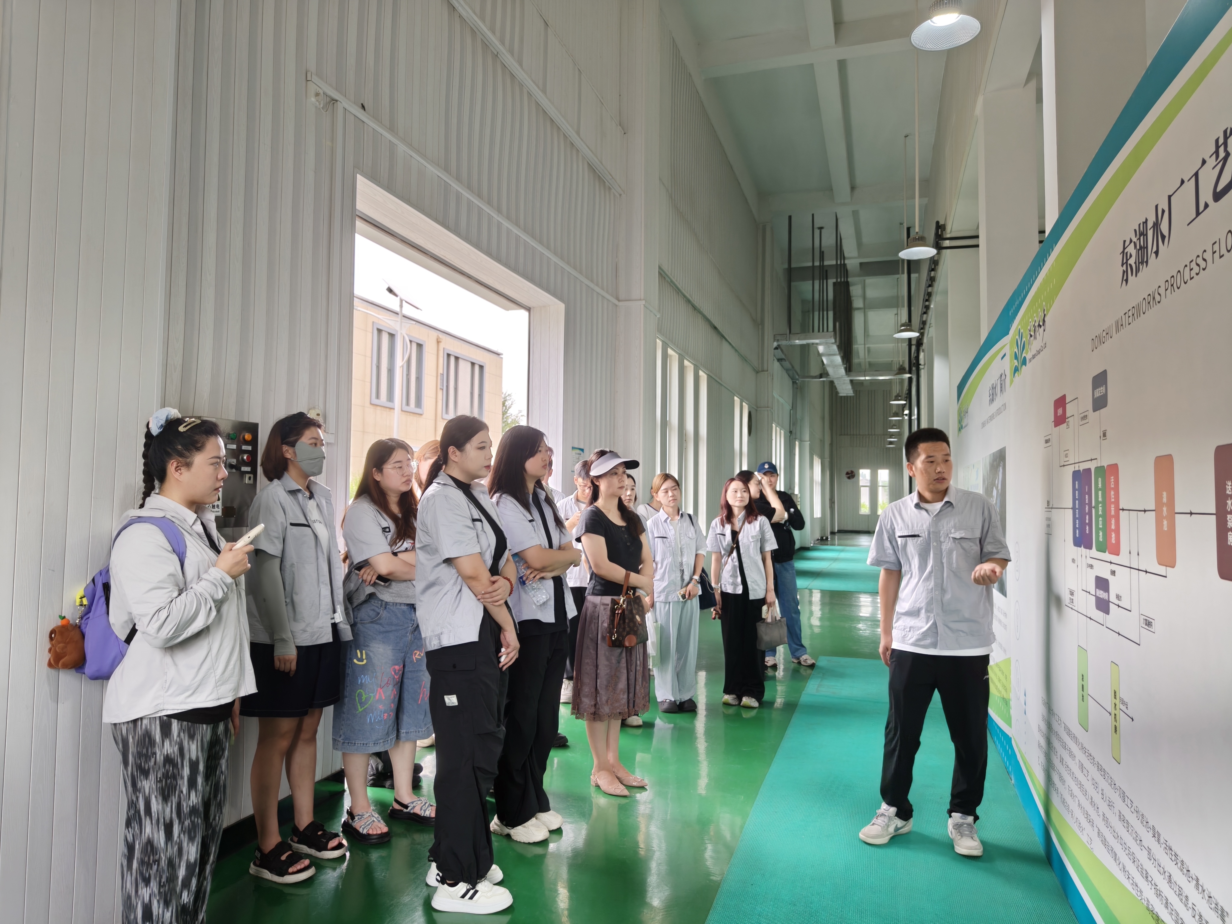 在东湖水厂,副队长王倩详细介绍了集常规工艺、深度处理与双膜技术于一体的全流程制水体系,解析不同工艺对水中污染物的去除原理及原水适配逻辑,帮助队员理解水质检测与制水工艺的协同关系。