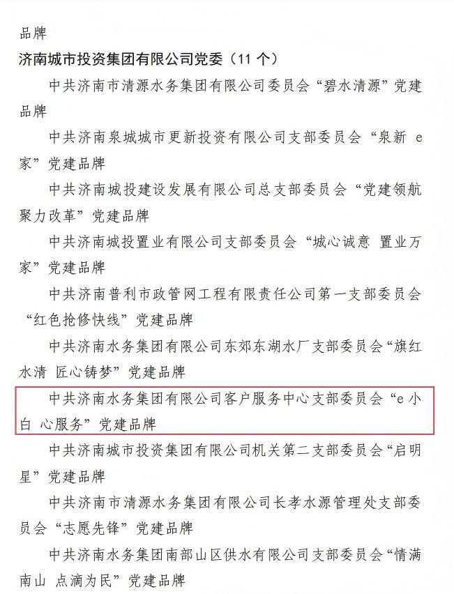 2025年,“e小白 心服务”党建子品牌入选济南市市属企业“百佳品牌”;情景党课《清流润桑榆 党心映万家》在市属企业“党课开讲啦”优秀成果集中评比观摩活动中获得三等奖。