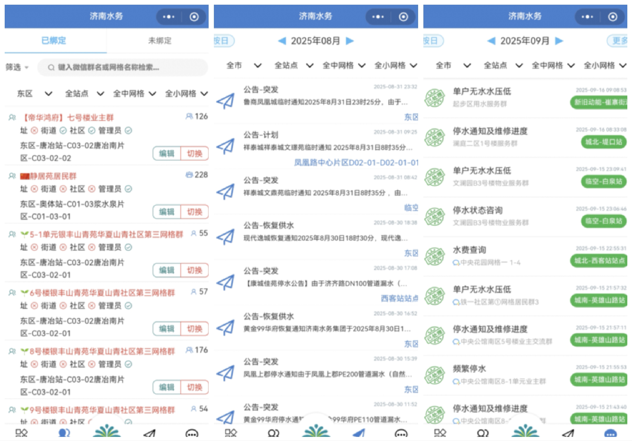 这一年,我们秉持善水惠民的初心不变,不仅在技术革新上持续发力,更将服务触角延伸至每一个细微之处。以“管理成网、协同成链、责任到格、服务到户”为目标,通过整合资源、优化流程、强化服务,构建供水网格化服务新模式,通过细化管理区域,明确网格责任,实现供水服务的精准化和高效化。施行《供水管家星级评定》,推动供水网格化服务效率与质量稳步提升。创新建立了社区网格员与供水管家“一对一”融合服务机制,在诉求落实、管道合口、防冻宣传等重点工作中,辖区办事处、居委会等高效协调,借助多种信息发布渠道,精准推送各类涉水信息,通过信息共享、协同作业,形成强大服务合力,有效提升了供水服务的响应速度和解决效率。未雨绸缪,提前部署今冬各项防冻工作,相继出台《2025年防冻工作实施方案》与《2025年防冻检查工作实施方案》,完成2024年末至2025年初受极寒天气影响产生冻表、冻管(含用户侧)情况的609处防冻整治工作。借助抖音、微信视频号、微博等自媒体及各大主流网络媒体,以用户喜爱的视频、动画、H5长图等形式,发布温馨提示与防冻小知识,网络媒体累计点击、浏览量达600多万次。全市210名供水管家逐户宣传冬季用水安全,张贴3万余张防冻温馨提示,提前防范确保冬季正常供水。推动微信群入驻工作,及时收集并反馈用户诉求,同时安排专门人员对微信群进行管理与维护,确保信息的准确性、及时性和有效性,提高用户的满意度与忠诚度。全年,8家区域公司共计进驻8083个居民微信群,其中4955个完成系统注册,覆盖范围持续扩大。市区4家分公司所辖DMA园区计划总数1613个,已进驻1550个,覆盖率达96.1%。构建“电子签+微网厅”联动机制,在引导新用户办理用水业务的同时,促使其同步完成“合同电子签+微网厅绑定”,实现“一次操作、两步完成”的效果,提升了业务办理的便捷性。