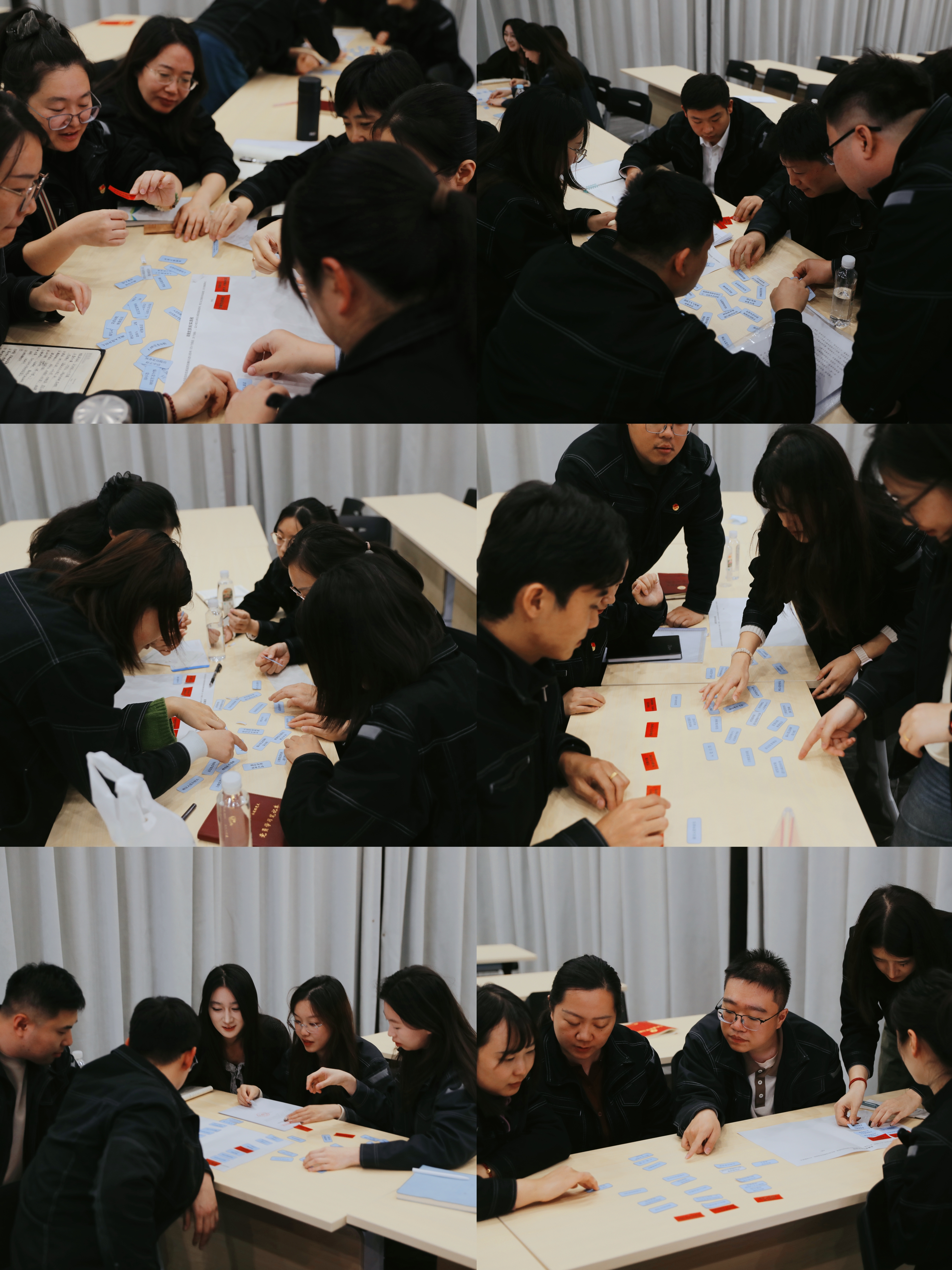 情景实战环节聚焦日常党务工作中常见的情景事件,将接收预备党员、支部按期换届选举、民主评议党员等常见典型场景以“情景盲盒”的形式呈现。各小队随机抽取题目后,在限定时间内开展“头脑风暴”,迅速明确会议类型,商讨会前准备及会议流程,在集体讨论中深化理解、梳理思路,实现理论与实操的融合。随后,围绕“如何高质量开好“三会一课”,大家积极分享了自己的想法和经验。通过现场策划“不忘初心、牢记使命”主题党日活动方案,各小队结合日常工作,迅速提出了志愿服务进社区、参观红色教育基地、党史知识竞赛等多个既有意义又有意思的活动方案。发展党员实操培训则将“动手”与“动脑”有机结合,通过小队协作,将打乱顺序的发展党员5个阶段25个步骤重新梳理排序,通过“动手”粘贴的方式厘清发展党员整个步骤,强化流程记忆,提高培训效果。