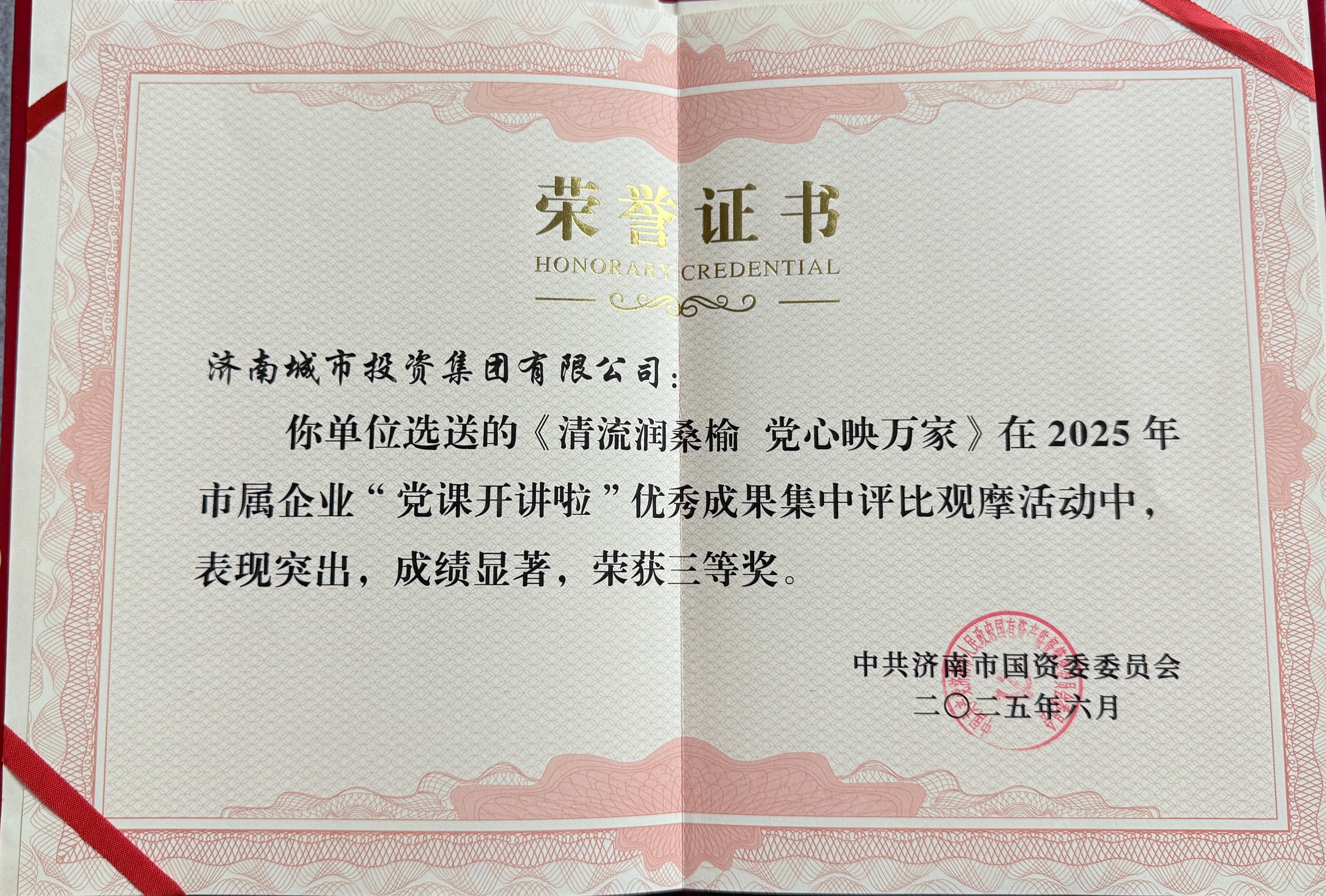 2025年,“e小白 心服务”党建子品牌入选济南市市属企业“百佳品牌”;情景党课《清流润桑榆 党心映万家》在市属企业“党课开讲啦”优秀成果集中评比观摩活动中获得三等奖。