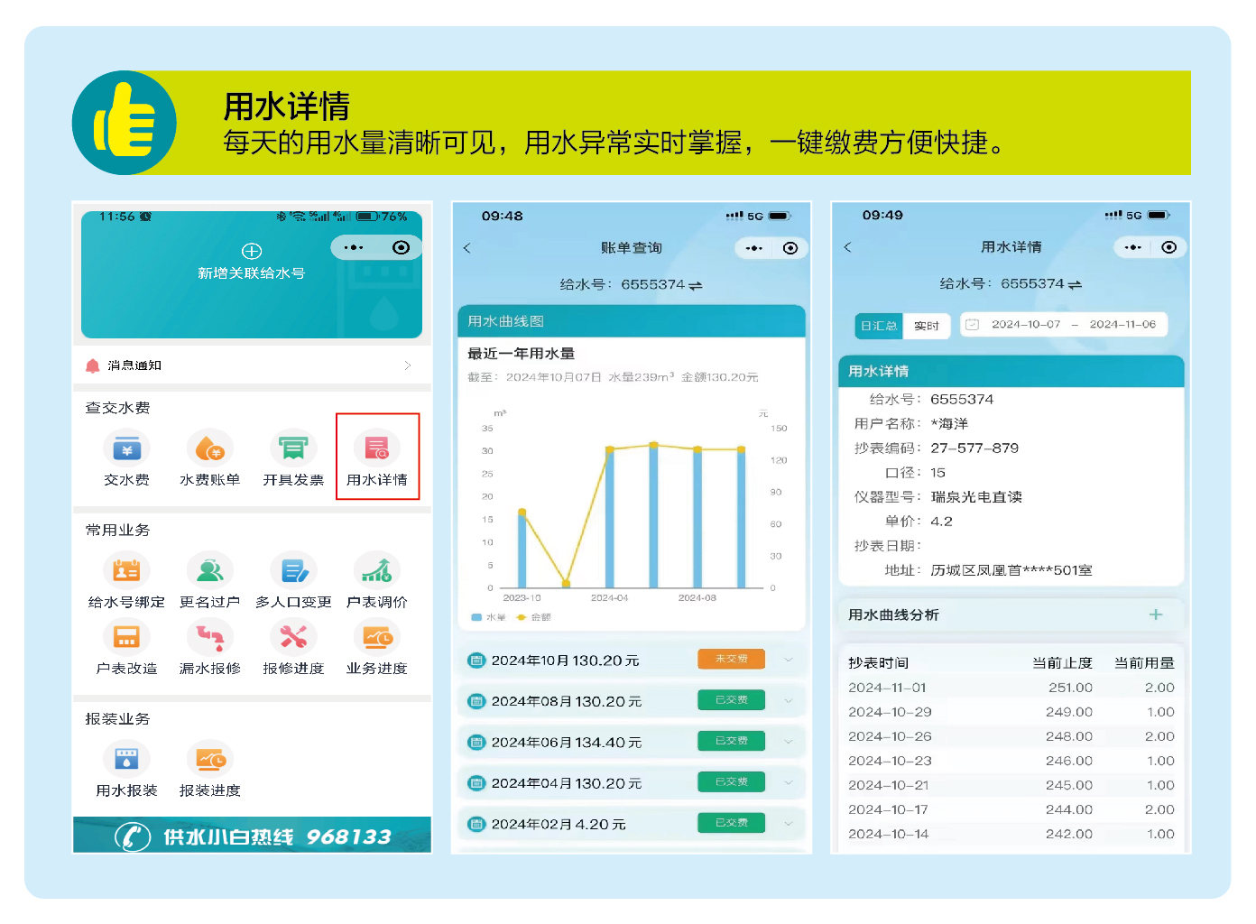这一年,我们秉持善水惠民的初心不变,不仅在技术革新上持续发力,更将服务触角延伸至每一个细微之处。以“管理成网、协同成链、责任到格、服务到户”为目标,通过整合资源、优化流程、强化服务,构建供水网格化服务新模式,通过细化管理区域,明确网格责任,实现供水服务的精准化和高效化。施行《供水管家星级评定》,推动供水网格化服务效率与质量稳步提升。创新建立了社区网格员与供水管家“一对一”融合服务机制,在诉求落实、管道合口、防冻宣传等重点工作中,辖区办事处、居委会等高效协调,借助多种信息发布渠道,精准推送各类涉水信息,通过信息共享、协同作业,形成强大服务合力,有效提升了供水服务的响应速度和解决效率。未雨绸缪,提前部署今冬各项防冻工作,相继出台《2025年防冻工作实施方案》与《2025年防冻检查工作实施方案》,完成2024年末至2025年初受极寒天气影响产生冻表、冻管(含用户侧)情况的609处防冻整治工作。借助抖音、微信视频号、微博等自媒体及各大主流网络媒体,以用户喜爱的视频、动画、H5长图等形式,发布温馨提示与防冻小知识,网络媒体累计点击、浏览量达600多万次。全市210名供水管家逐户宣传冬季用水安全,张贴3万余张防冻温馨提示,提前防范确保冬季正常供水。推动微信群入驻工作,及时收集并反馈用户诉求,同时安排专门人员对微信群进行管理与维护,确保信息的准确性、及时性和有效性,提高用户的满意度与忠诚度。全年,8家区域公司共计进驻8083个居民微信群,其中4955个完成系统注册,覆盖范围持续扩大。市区4家分公司所辖DMA园区计划总数1613个,已进驻1550个,覆盖率达96.1%。构建“电子签+微网厅”联动机制,在引导新用户办理用水业务的同时,促使其同步完成“合同电子签+微网厅绑定”,实现“一次操作、两步完成”的效果,提升了业务办理的便捷性。